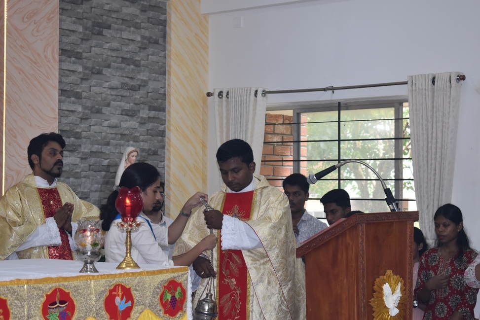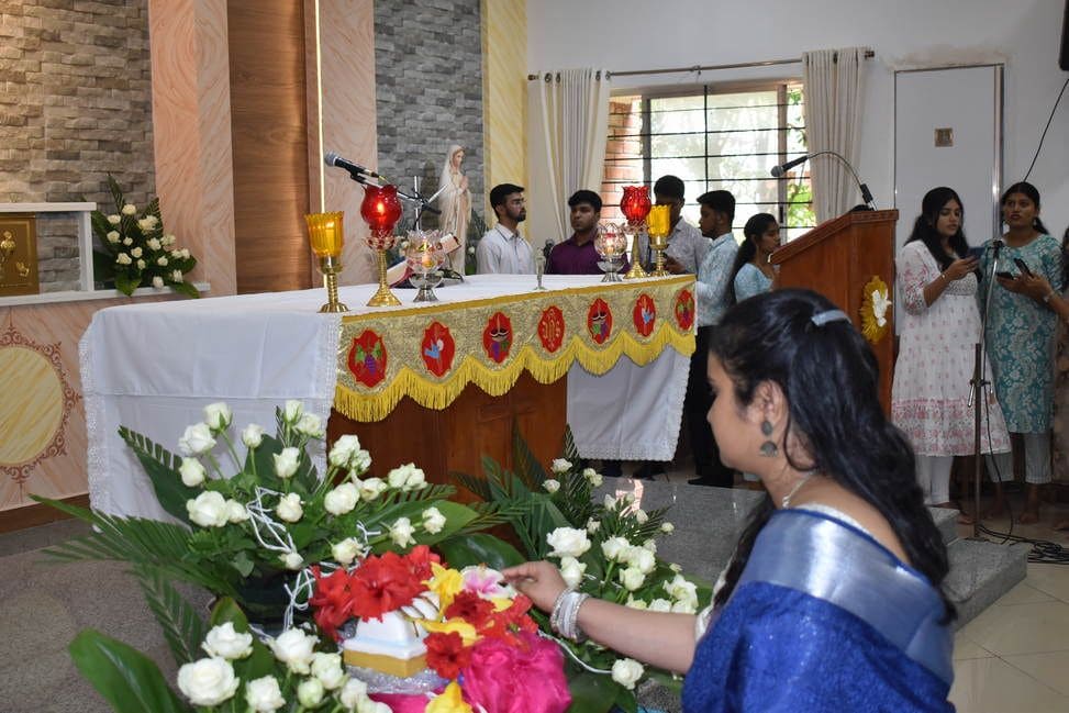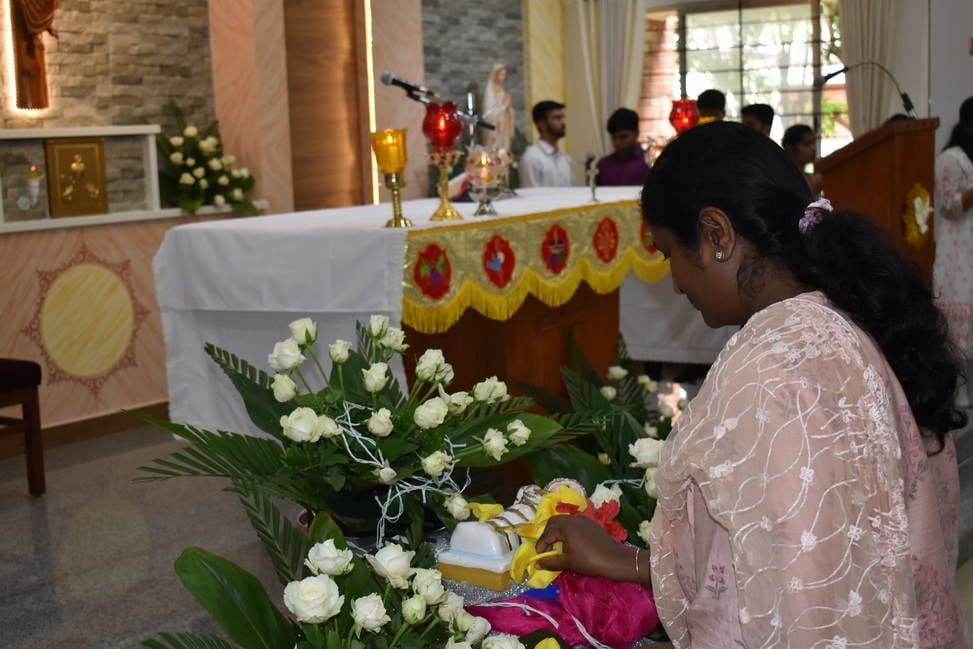 Earlier, the new corn was blessed by Rev Fr Roshan Pereira SJ, followed by a procession with the infant Mother Mary in a palanquin.