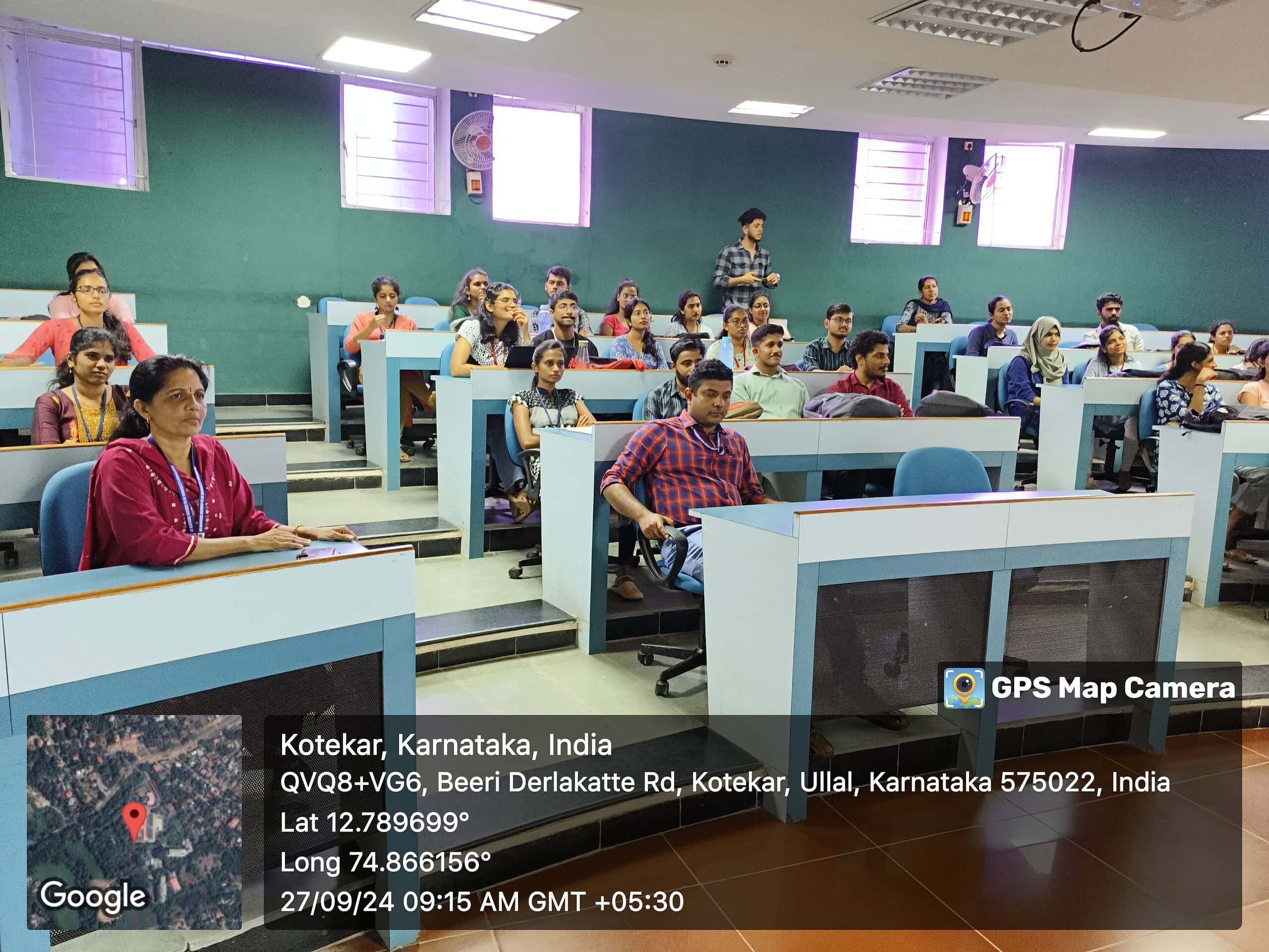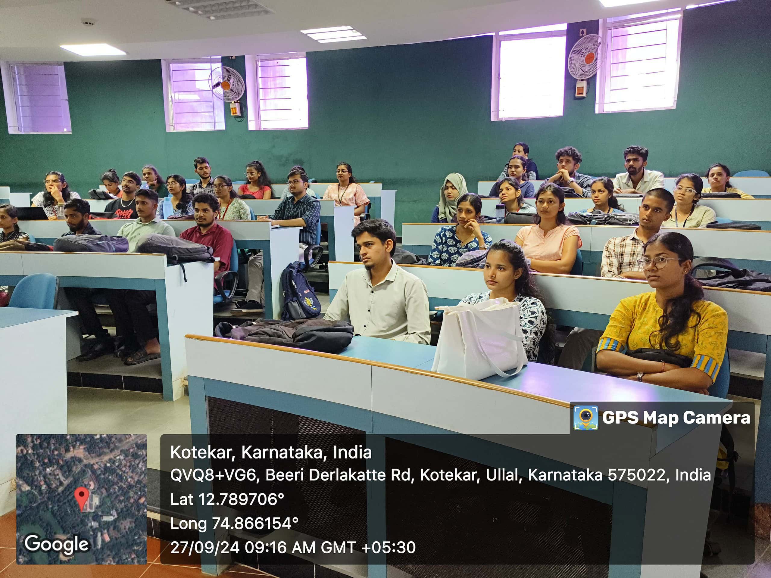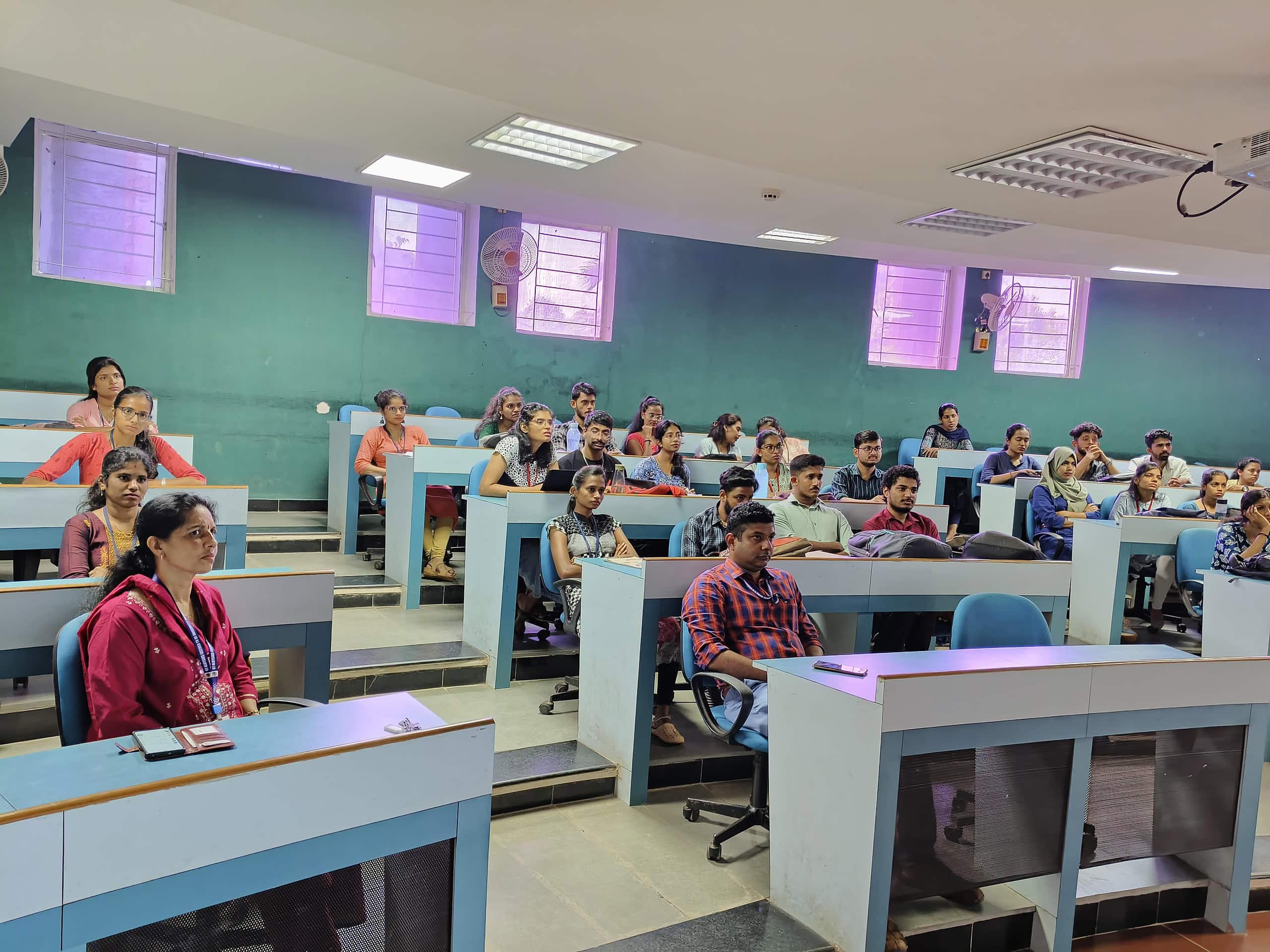 The Department of Bioinformatics, St Aloysius (Deemed to Be University) AIMIT Centre hosted an insightful guest lecture by Jithin Jose Mathew on September 27. Mr Jithin is an esteemed alumni of the department and currently pursuing PhD at North Dakota University, USA. First and second year MSc Bioinformatics students together with Dean of IT and HOD of Bioinformatics participated in the event. Mr Jithin shared valuable insights on ‘Precision Farming’, an area where his research is focused. He emphasized the role of bioinformatics in advancing agricultural innovations, particularly in enhancing crop resilience, improving yields, and supporting sustainable farming practices through data-driven solutions.