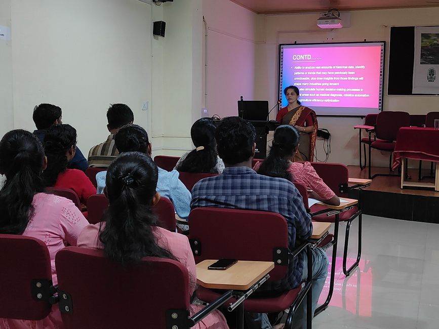 In her talk she explained how Artificial Intelligence has influenced agriculture and has made precision farming popular. She further stressed the need to generate data in agriculture so that the same can be used by technologists for building AI models. The session was interactive and students showed interest in doing collaborative projects.