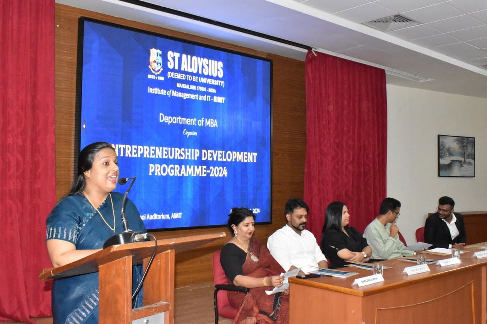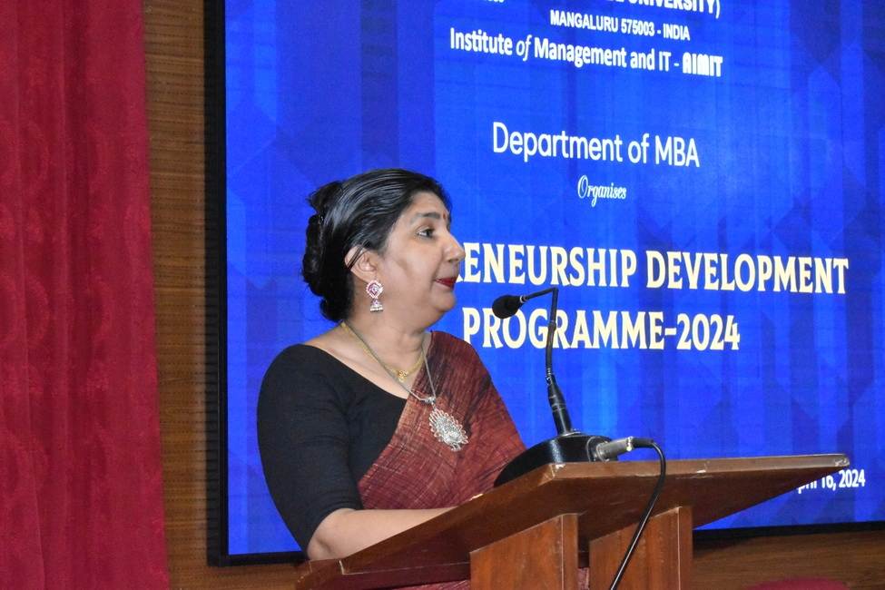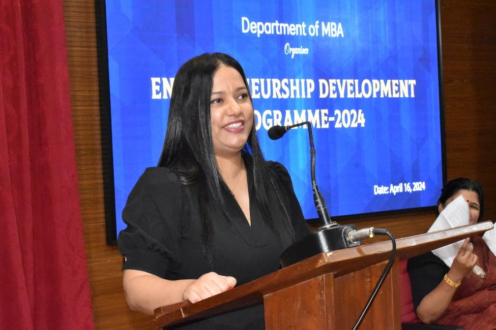 The annual Entrepreneurship Development Programme (EDP) of the MBA department was held on April 16, 2024. The guest of honour, Smitha Priya D’Souza, managing director, Prime Tech, MEA, Dubai, speaking on the occasion, emphasised the importance of managing people and cash flow for running a successful business, and she encouraged participants to lead effectively and navigate challenges with dedication.