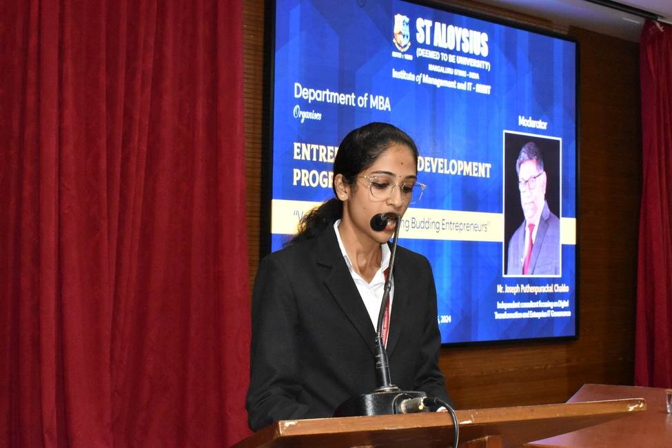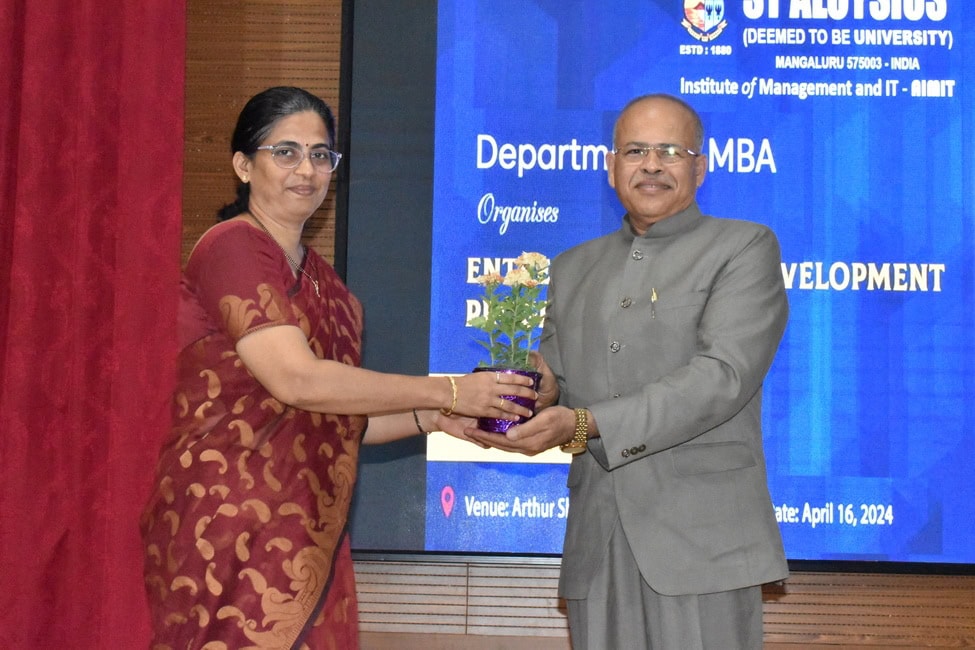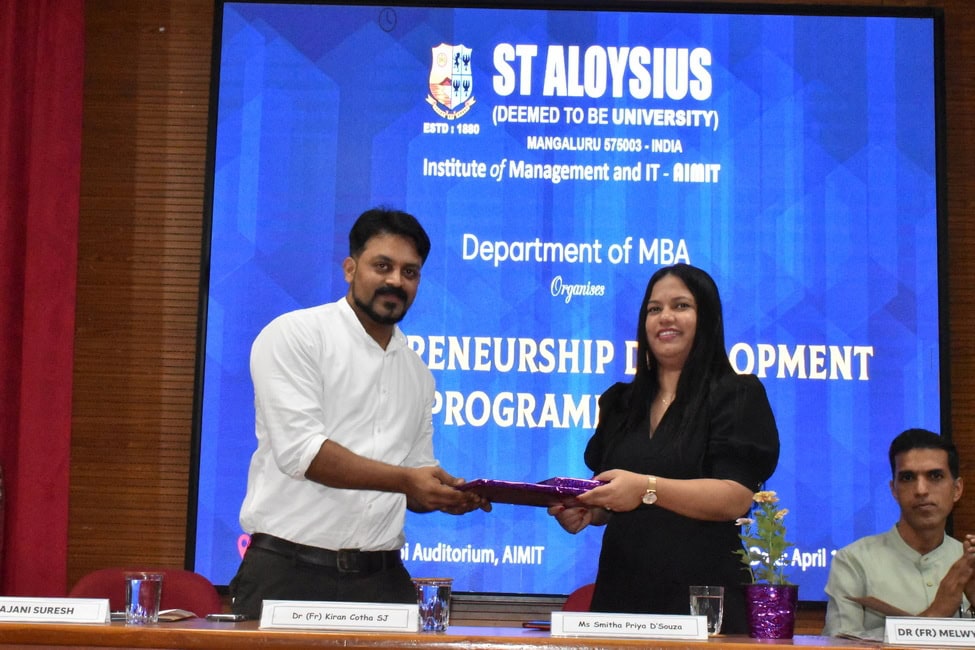 Earlier, Dr Swapna Rose, the faculty in charge, delivered the welcome address, and Dean of Academics and Research of MBA Dr Rajani Suresh provided an overview of the EDP programme. The programme was compered by Ms Nakshathara, and Mr Raghavendra proposed the vote of thanks.