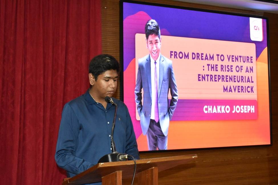 The event also included a session by Joseph P.C., an IT governance consultant, who led a discussion with AIMIT Centre student entrepreneurs. Their ventures ranged from YouTube channels to event management, underscoring the need for solving real-world problems.