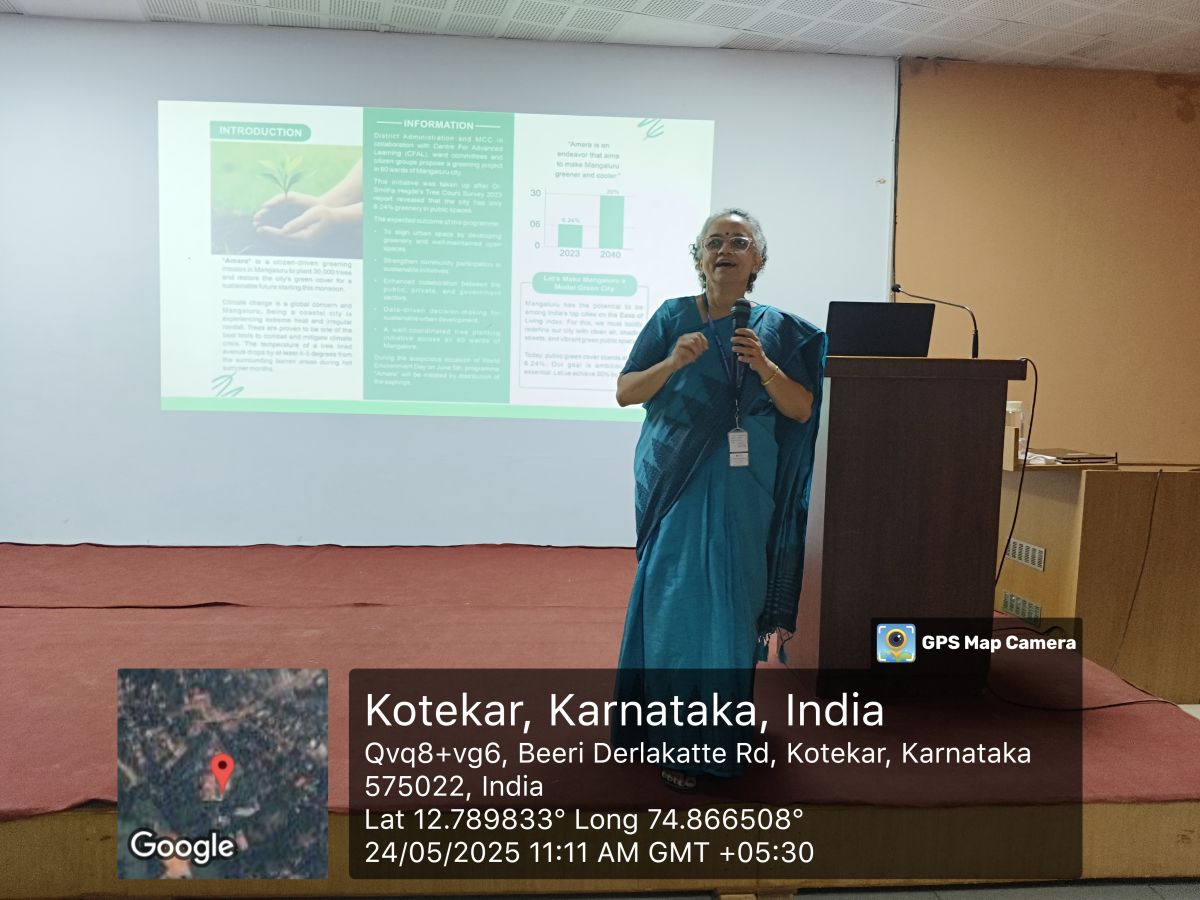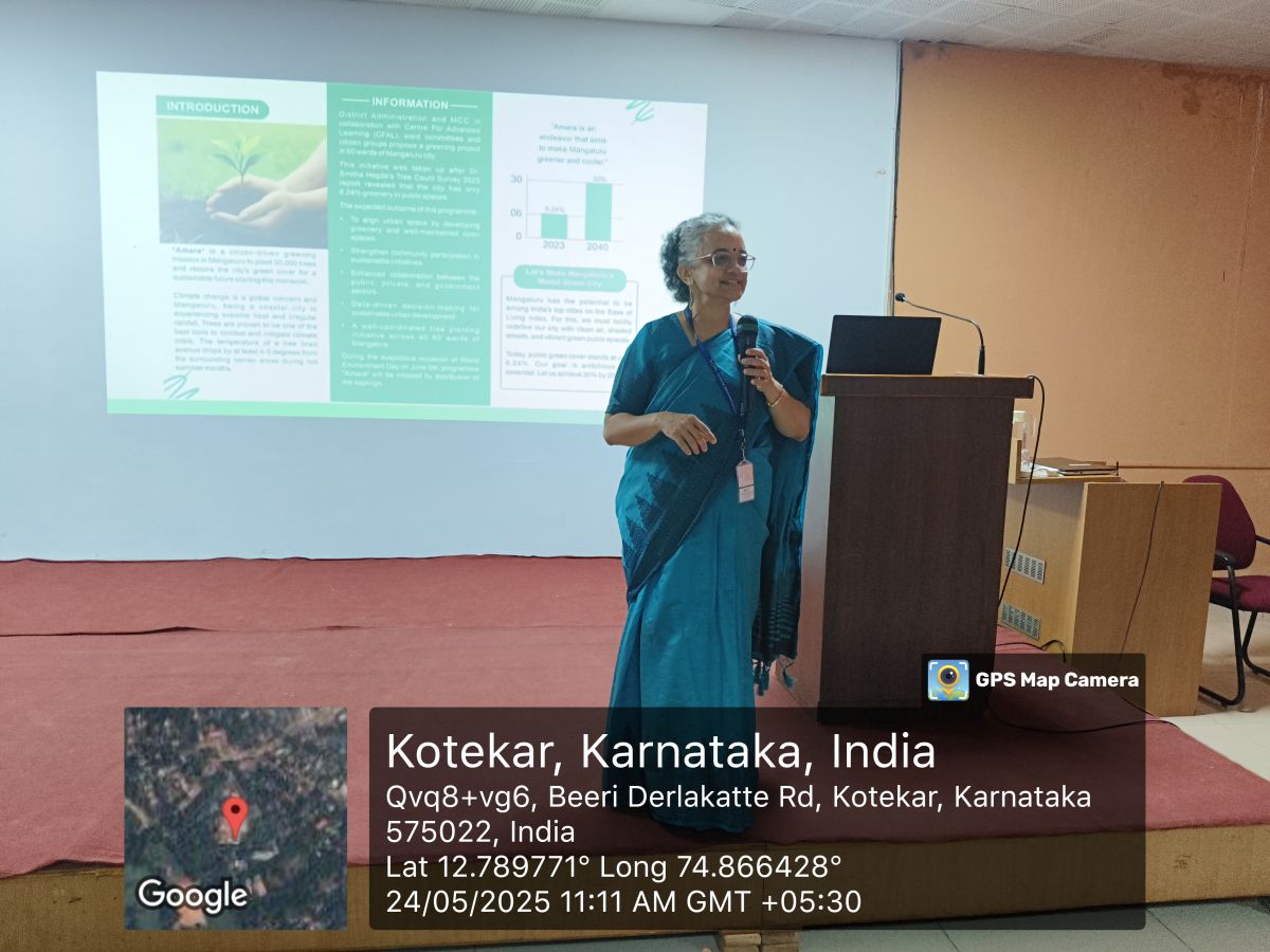 On May 24, 2025, the MBA Department of AIMIT Centre, St Aloysius Deemed to be University, organized an insightful session led by renowned environmentalist Dr. Smitha Hegde. The event, part of the department’s green planting initiative, was designed for final-year MBA students to promote awareness of sustainable practices.