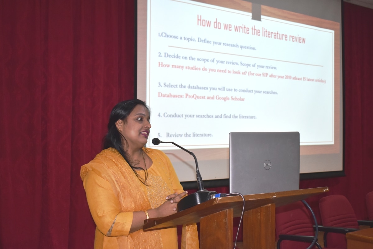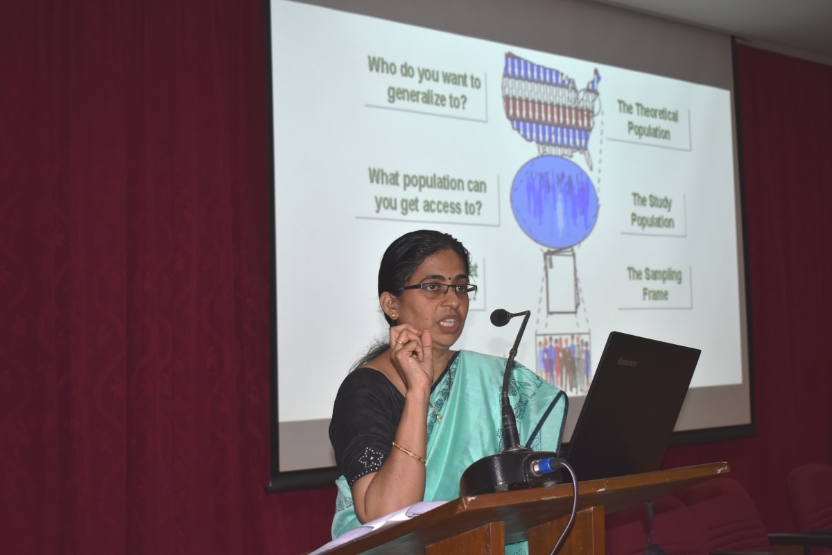 In the second half of the day, Dr Beena Dias gave an in-depth explanation on research methodology, how to state a problem, types of questions that need to be addressed in the questionnaire and limitations of the study. Dr Dhananjaya K spoke about data analysis and the use of real-time data through SPSS software.