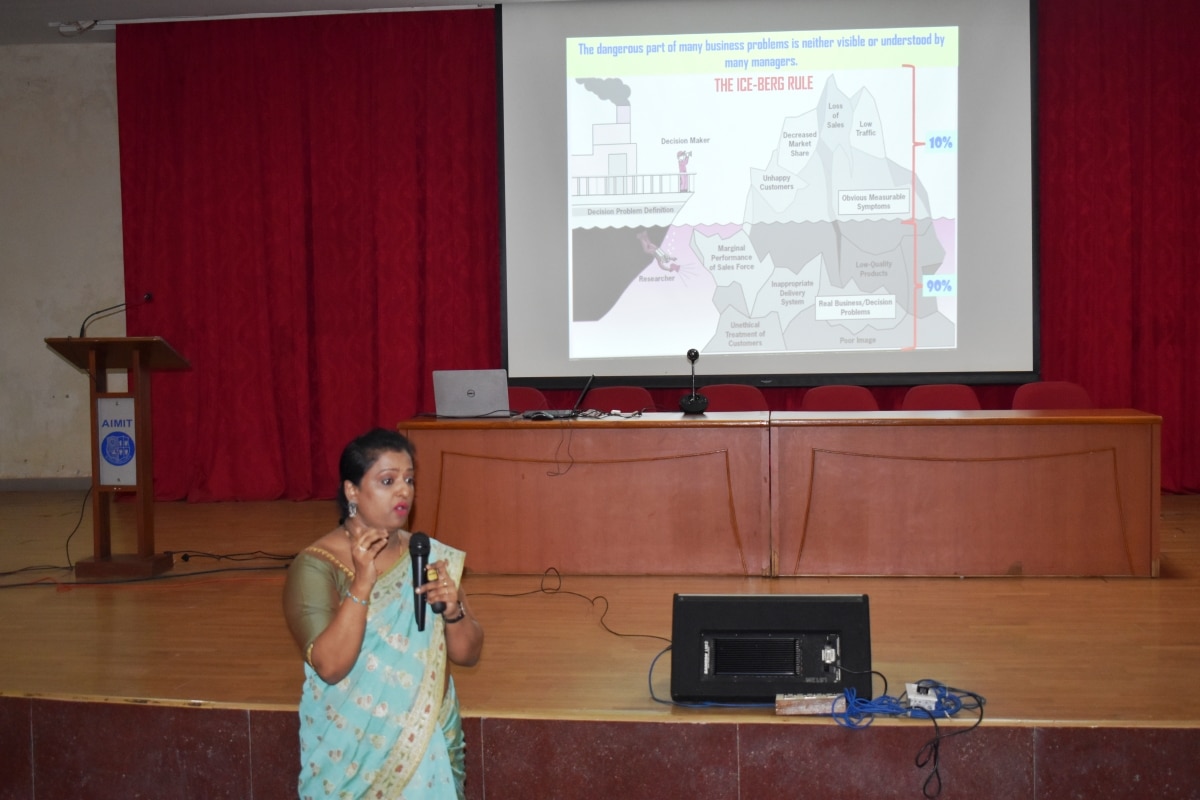 A workshop on problem centric research was conducted for students of II MBA on March 4 at AIMIT Centre. The programme began with a prayer service. In the first session Dr Rowena Wright briefed the students on the research report, its format, layout and overall SIP project that has to be undertaken by the students. In the second session, Dr Swapna Rose spoke about literature review and citation. She explained how to use databases such as Proquest and Google scholar.
