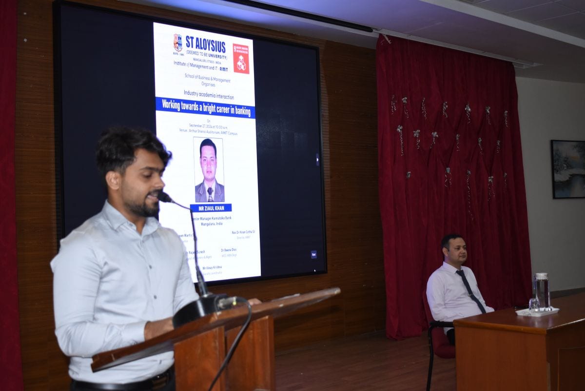 Mr. Ziaul Khan, Senior Manager at Karnataka Bank, was the resource person. He began the lecture by stating that India is gradually becoming the third-largest economy in the world, and provided details on the differences in the size of global economies. Representing an industry that has significantly contributed to national wealth creation, Mr. Khan emphasized that the banking sector is the most regulated in the world. He noted that 75% of the banking business is managed by just eight banks, and that with reduced interest margins, banks are increasingly focusing on customer retention. Additionally, he pointed out that the sector is now looking for talents with technological and market-smart skills.