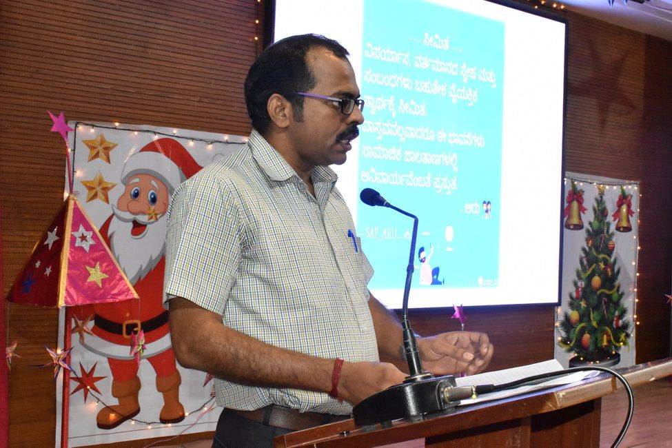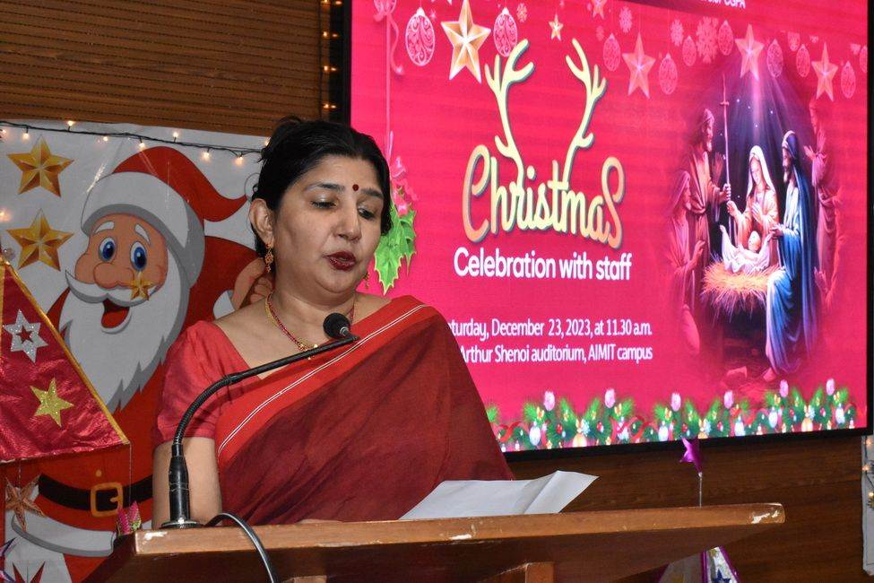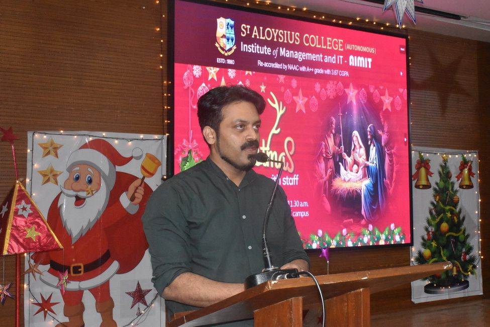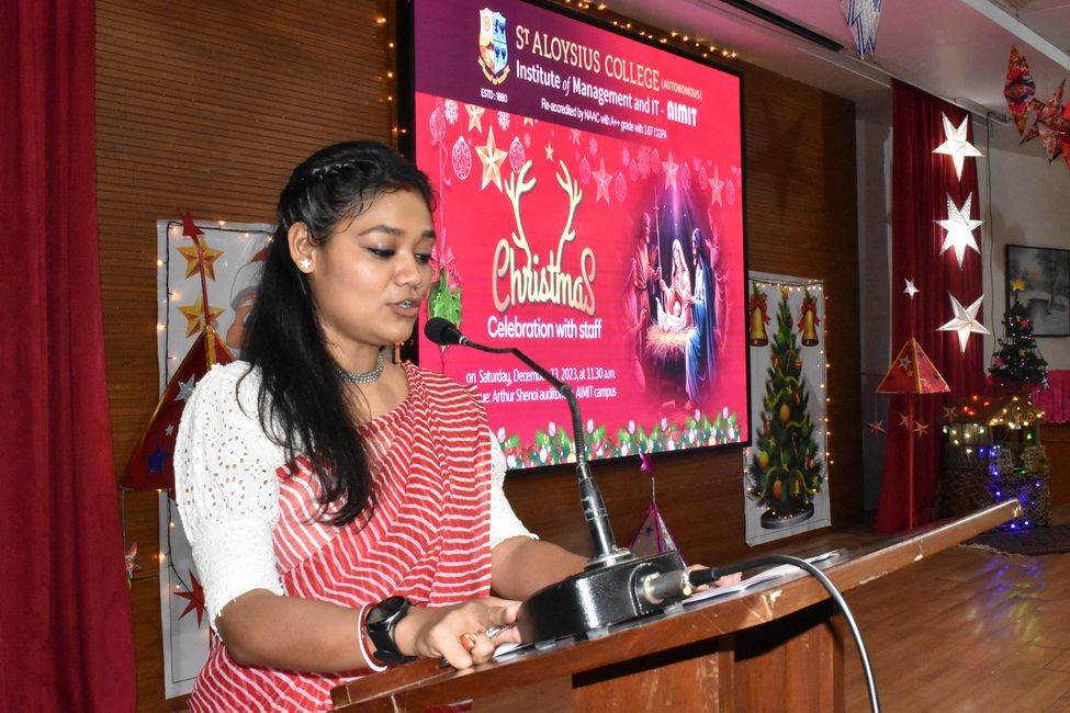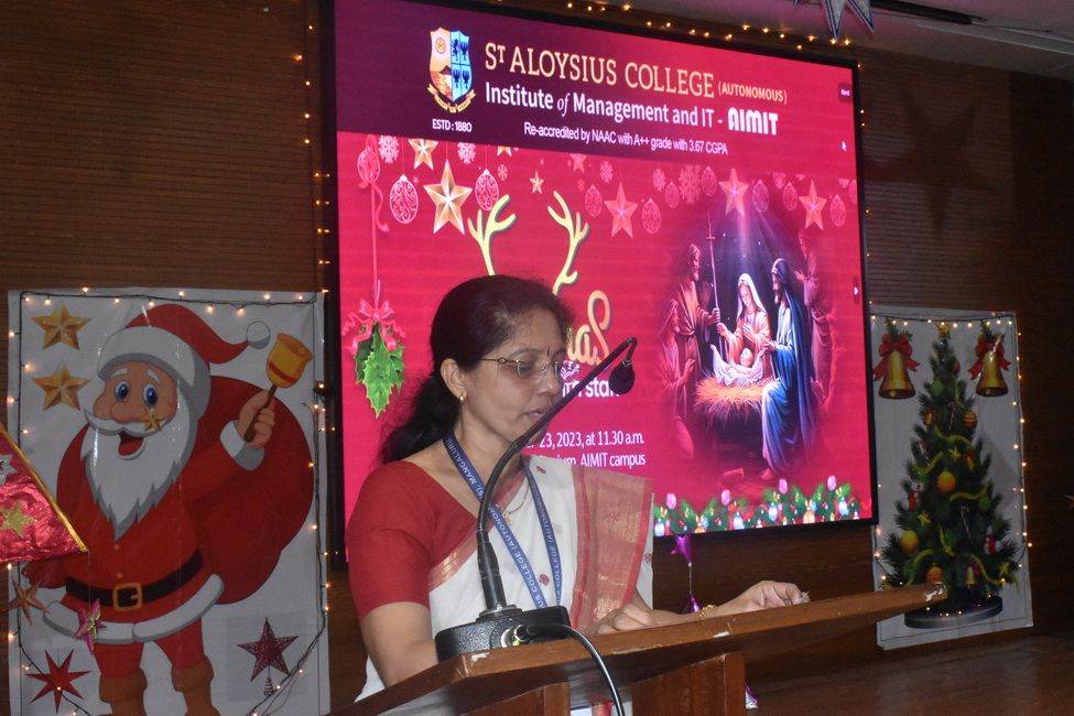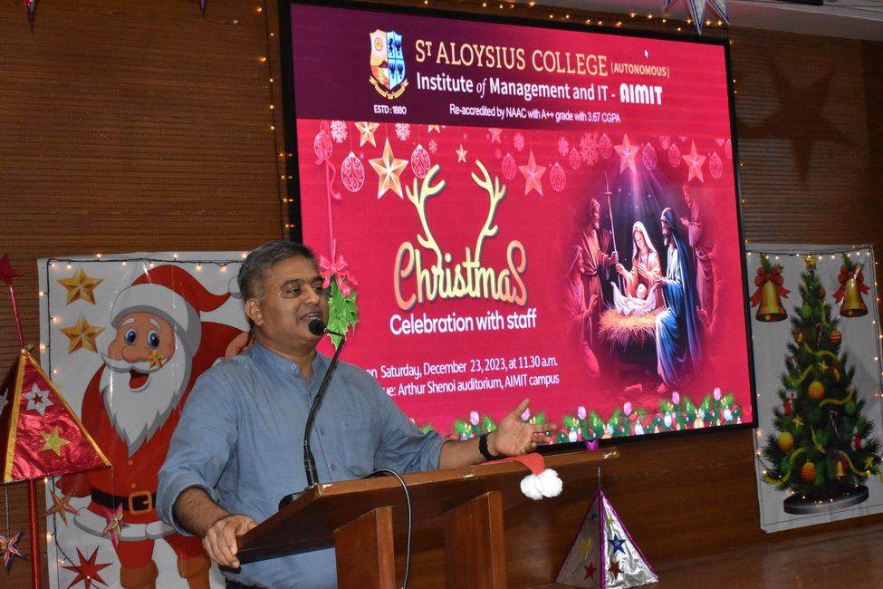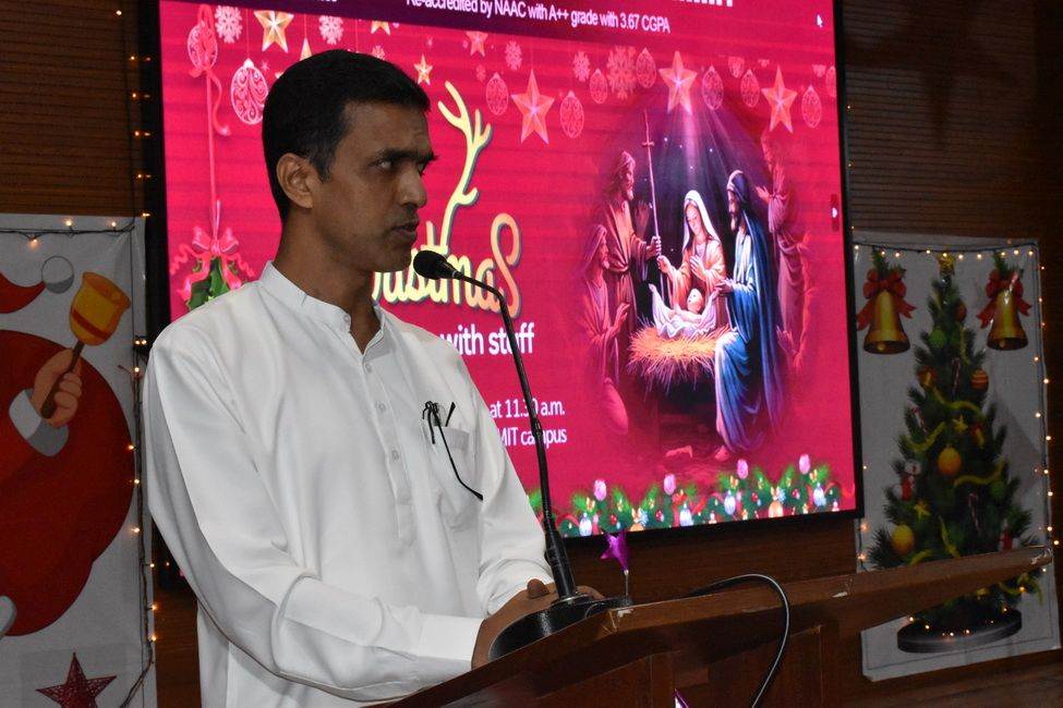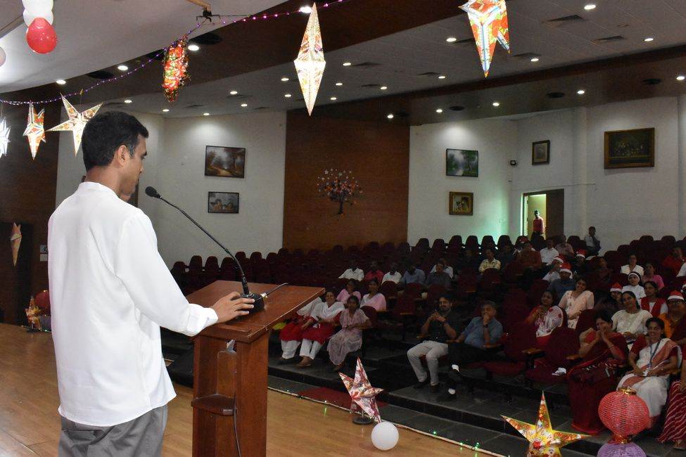 Mr Vinay Krishna, a faculty member from the MBA Department, delivered the Christmas message. In his message, he said, “Emotions are evoked by the senses. In the same way in December our senses evoke the festival of Christmas, especially when you hear the tunes of Christmas.” He also said that Christmas is not only the season of giving but also the season of caring.