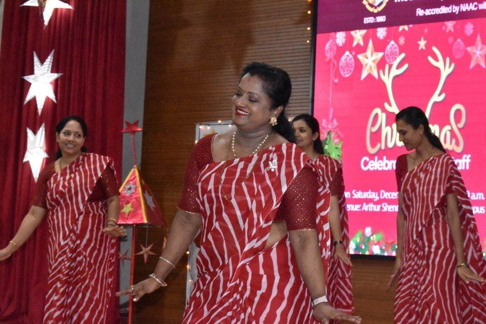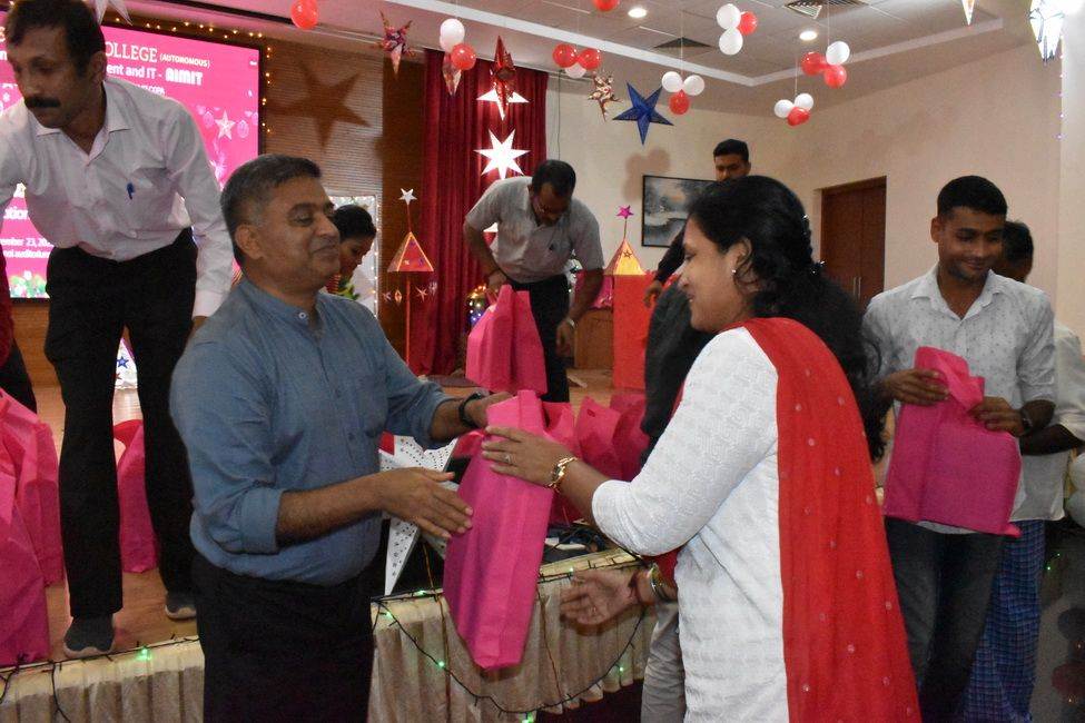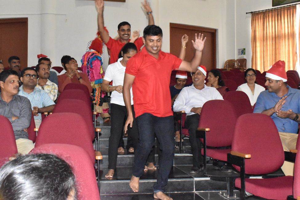 Teaching and non-teaching staff put up dances to cheer the audience. Aravind Prabhu from the IT department recited poems. Christmas gifts were distributed to all, followed by lunch. The programme was coordinated by Dr Jeevan Pinto, Dr Poulami Saha and Dr Roshan Suvaris.