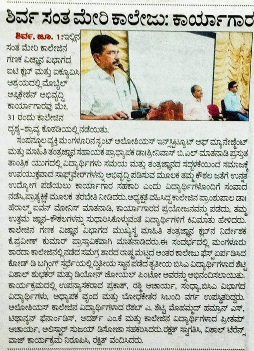 K Praveen Kumar, HOD BCA and Dr Herald Ivan Monis, Principal of St Mary’s College were present.