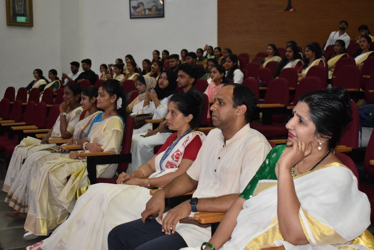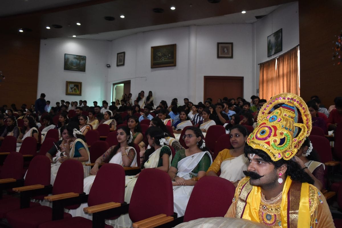 The festivities continued outdoors with a traditional Shingarimelam and tug-of-war competitions, and traditional sweets like Holika and Payasam were distributed to all attendees. The dignitaries for the event included Rev. Dr. Roshan Pereira, Assistant Hostel Director; Dr. Rajani Suresh, Dean of MBA; and Dr. Hemalatha, Dean of IT.
