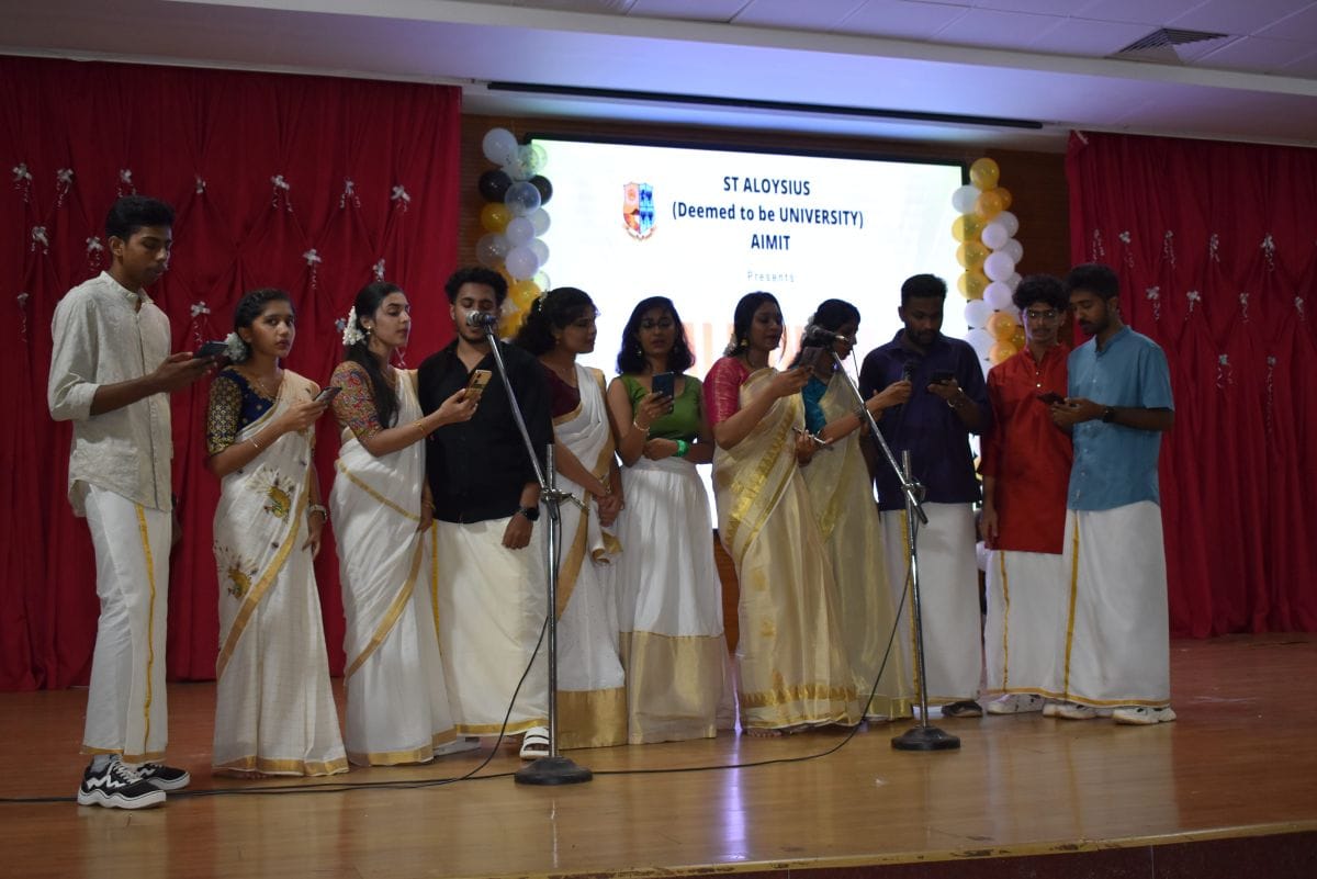 The dignitaries, along with the student coordinators, lit the lamp in the spirit of the celebration. Rev. Dr. Roshan Pereira addressed the gathering about the significance of Onam and its traditions, stating that “Onam brings the spirit of unity and brotherhood among all.”