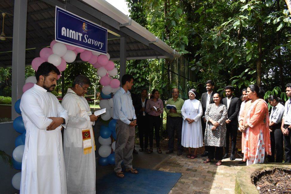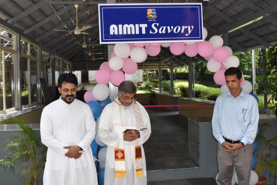 The blessing of AIMIT Centre Savory was conducted by Fr Melwin J. Pinto SJ, Rector, St Aloysius Institutions. In his message Fr Pinto said that when food is good everything goes on smoothly. “I am sure this new facility will help students and staff on the campus to help themselves to take a break from their busy academic life. We believe in giving a variety of eats and this facility will be an addition to many more such developments that are envisaged for this campus,” he said.
