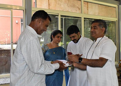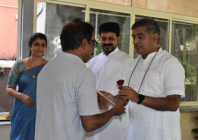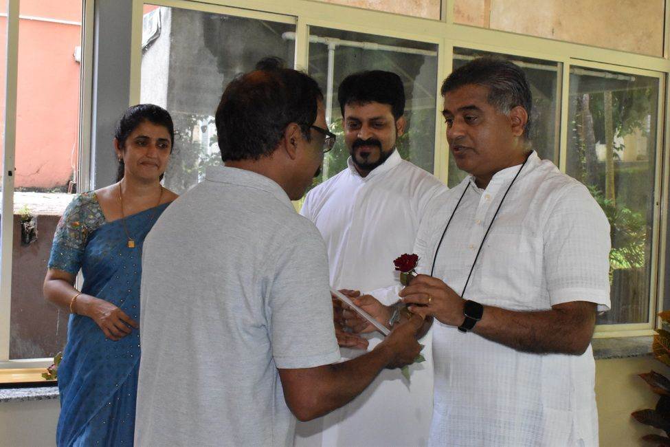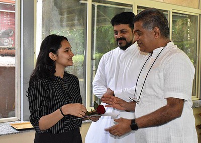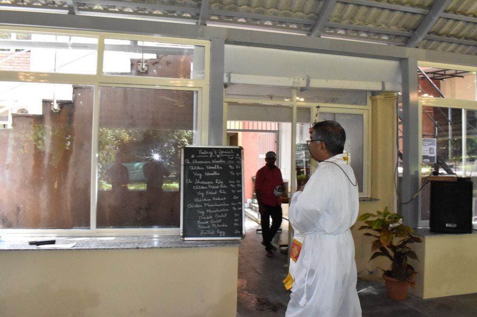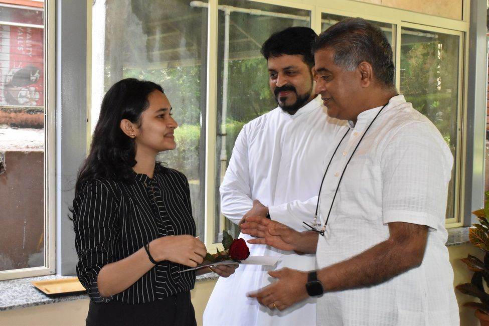 Mr Suresh and Mr Jayarama who were architects of the new facility were honoured by Fr Rector. The name for the food court was suggested by Jahnavi SB, II year MSc. Data Science student. She too was honoured on the occasion.