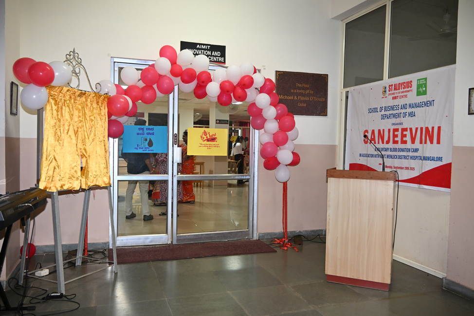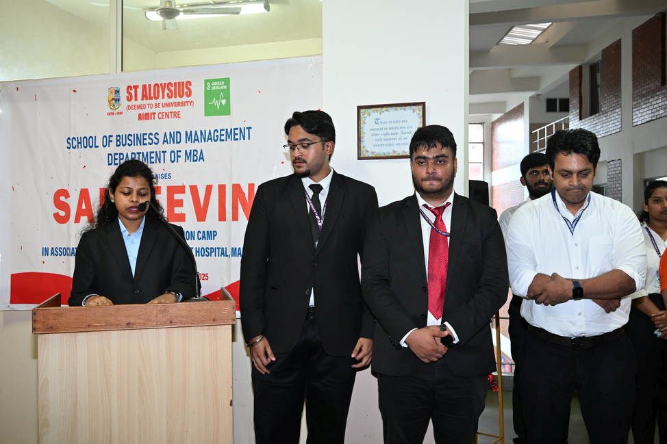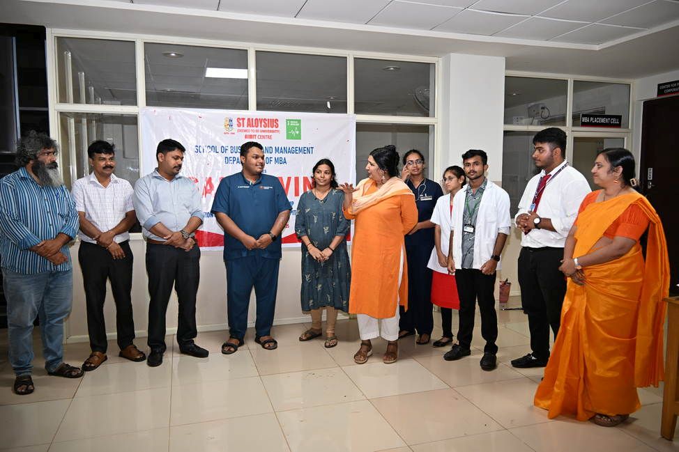 The camp was inaugurated by Director Dr (Fr) Kiran Cotha S J in the presence of Dr (Fr) Manoj, Dean Dr. Rajani Suresh, HOD Dr. Beena Dias, Faculty Co-ordinator Mrs. Harinakshi, Student Co-ordinator Mr. Joyal D’Souza, Ms. Delisha D’Souza, faculty members, and students. In his address, the Director highlighted the importance of voluntary blood donation as a life-saving service to society.