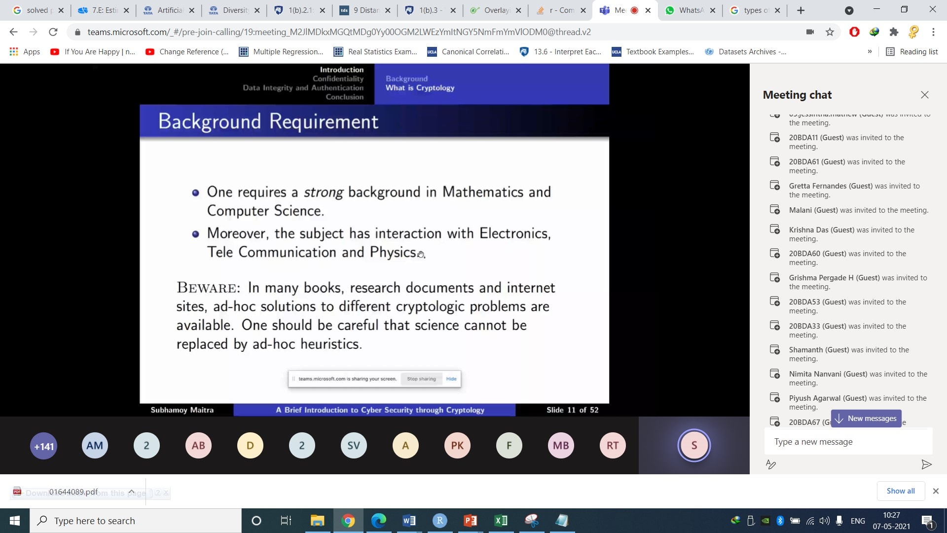 Prof. Maitra opened the conversation to the students for questions. A question regarding his stand on the current scenarios of cryptocurrency was well answered by him, telling students to do a self-research on the different cryptocurrencies and their futures in the world market. He concluded the session by saying “we cannot have security without cryptology”.
