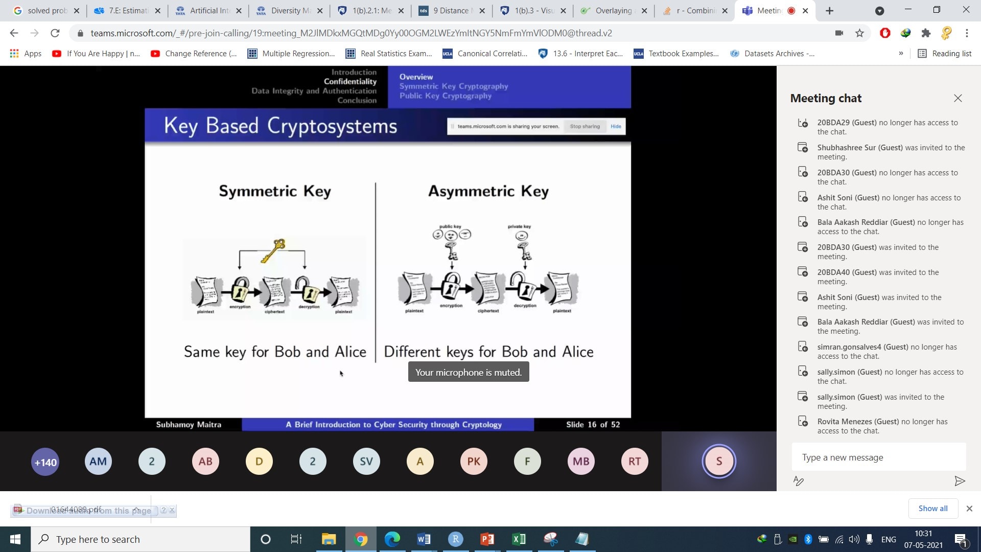 The session commenced with a brief introduction and the broad meaning of cryptology which encompasses the vast field of cryptography and cryptanalysis. Cryptography is the process of converting an understandable message into a complex code. This code can only be unlocked into the original text using the suitable algorithm which derives the concept of cryptoanalysis.