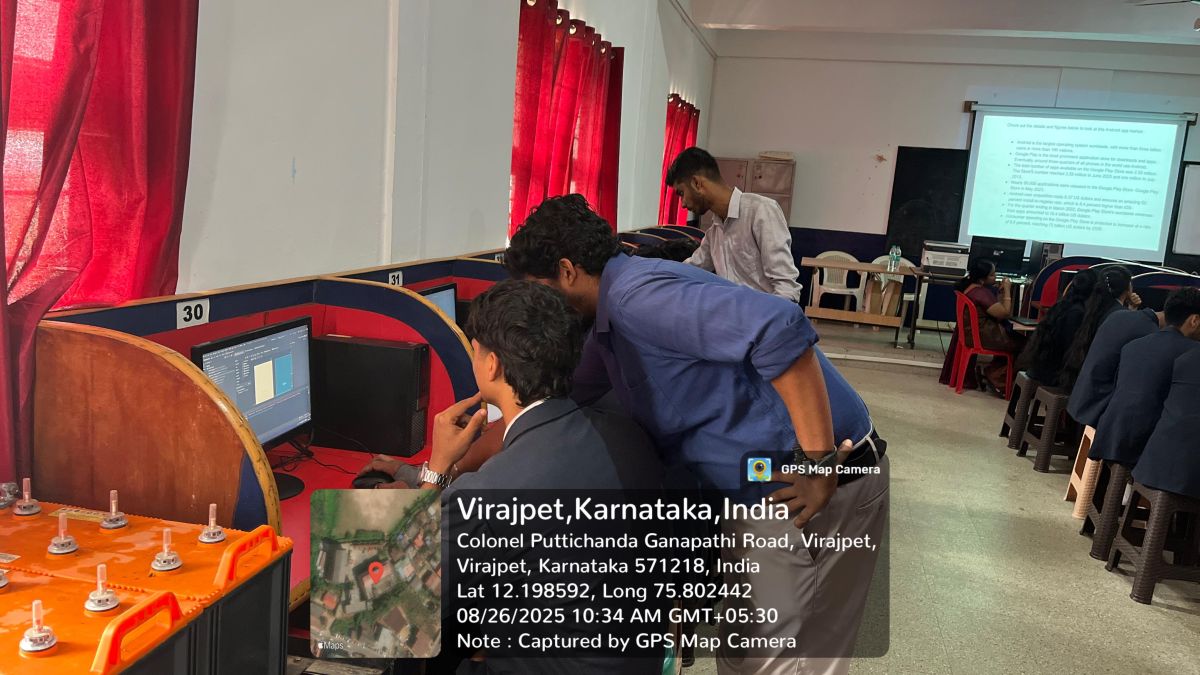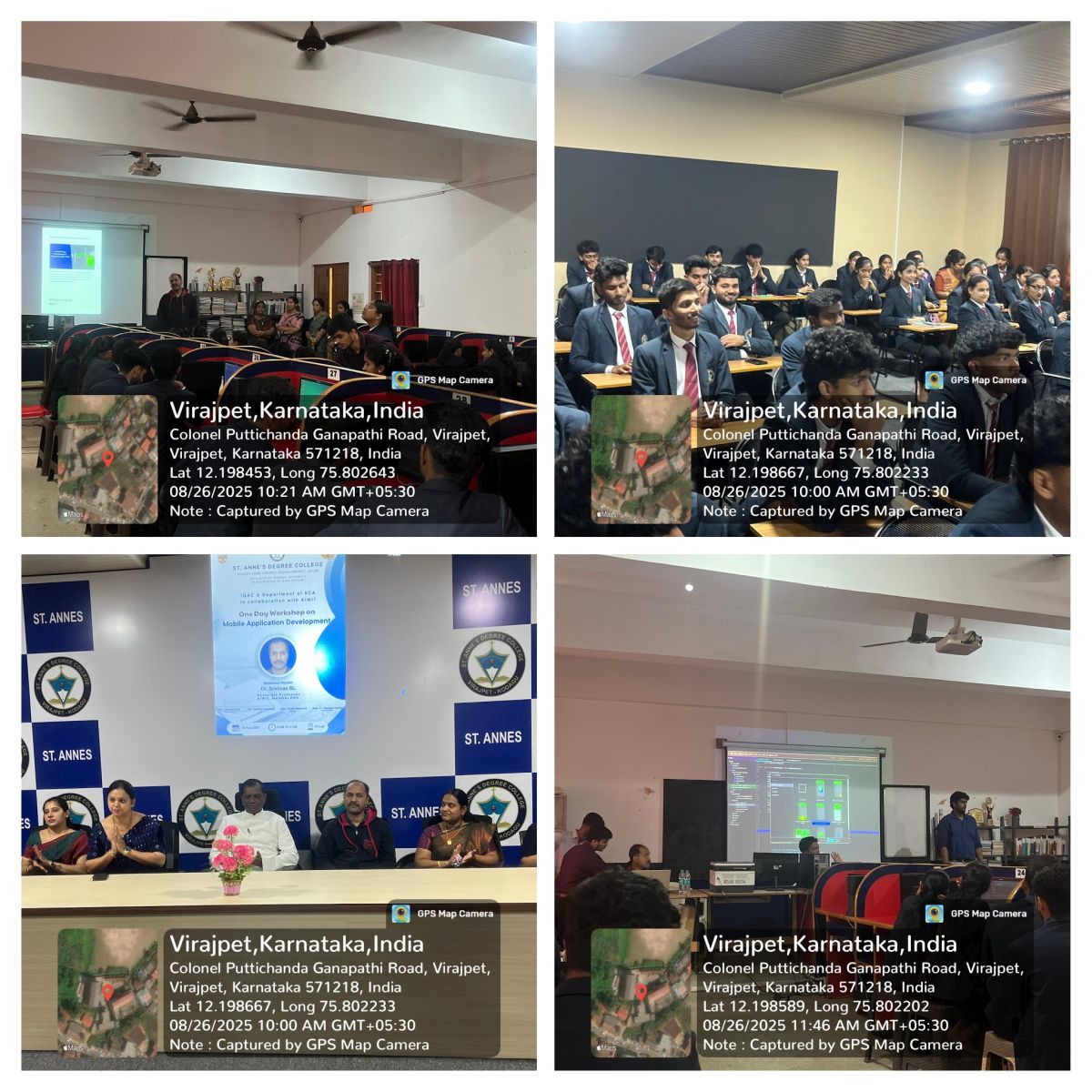 St Aloysius (Deemed to be University), Department of MSc (Software Technology), organized a session on 26/08/2025 at St. Anne’s Degree College, Virajpet, Kodagu District. Dr.Srinivas B.L., Associate Professor, Department of MSc (Software Technology), was the resource person for the one-day workshop on “Mobile Application Development.” He was assisted by four MSc Software Technology students – Mr. Mithun K. Manoj, Mr. Rahul, Mr. Maeve Kirk D’Cruz E Fernandes, and Mr. Ashith Joswa Fernandes. The workshop was conducted for the final-year BCA students of St. Anne’s Degree College, Virajpet, Kodagu. The session explained the value of mobile applications in the global market, providing students with hands-on experience and sharing real-world mobile application market analysis data. The workshop covered various topics such as a brief outline of the Android application marketplace.